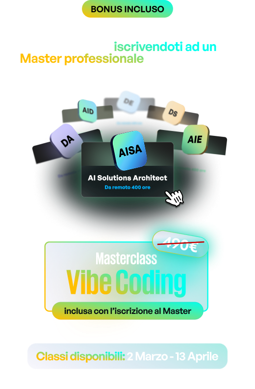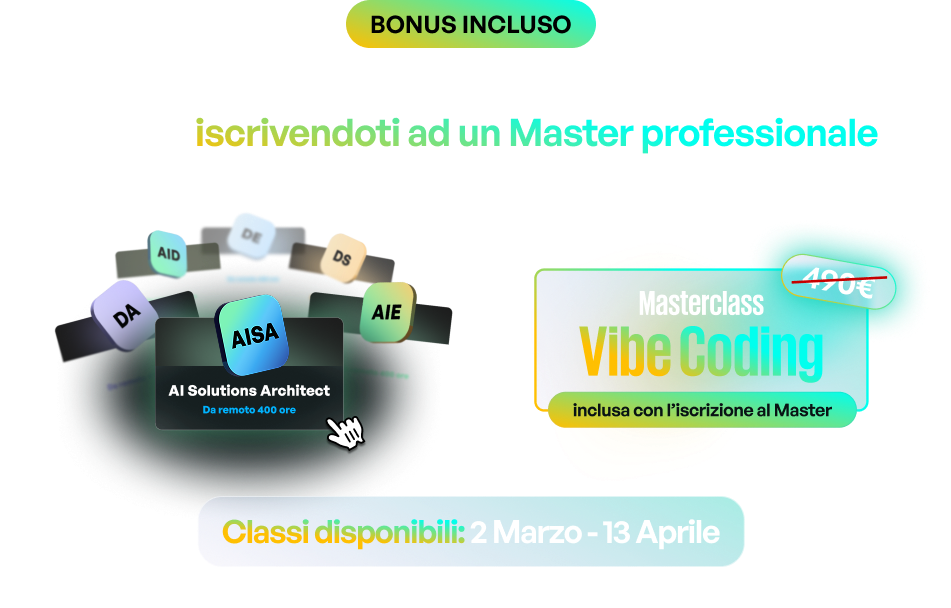 Masterclass Vibe Coding del valore di 490€ inclusa iscrivendoti ad un Master professionale entro il 2 Marzo